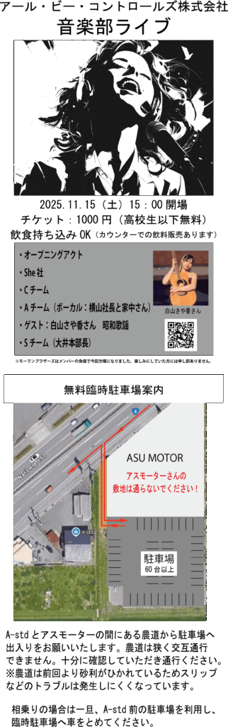 2025/11/15(土)アール・ビー・コントロールズ株式会社音楽部ライブを開催します